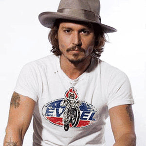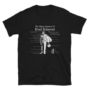 Evel Knievel® -Evel Rides Again in this cool artist rendition - Available in sizes Small - 3XL and Colors Black or White