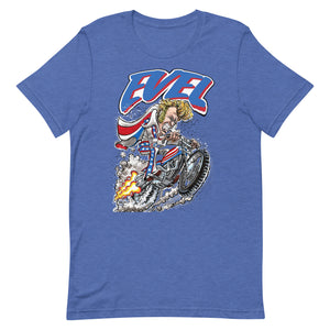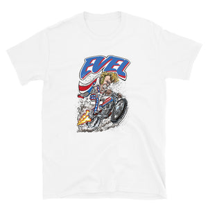 Evel Knievel® - Evel Rides Again in this Cool Artist Rendition - Available in Sizes Small - 5XL - Colors Royal Blue, White, Pink or Sports Gray to make you Happy!