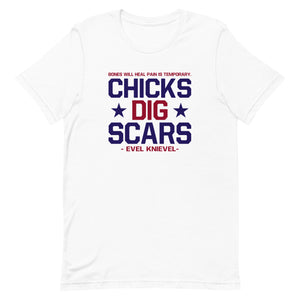 "Chicks Dig Scars" Men's Evel Knievel® Tee in Sizes Small - 5XL