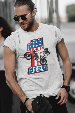 Evel Knievel®-Join Our Team #1 Men's Motorcycle Tee in Grey Available in Sizes Small - 3XL colors Black and Grey