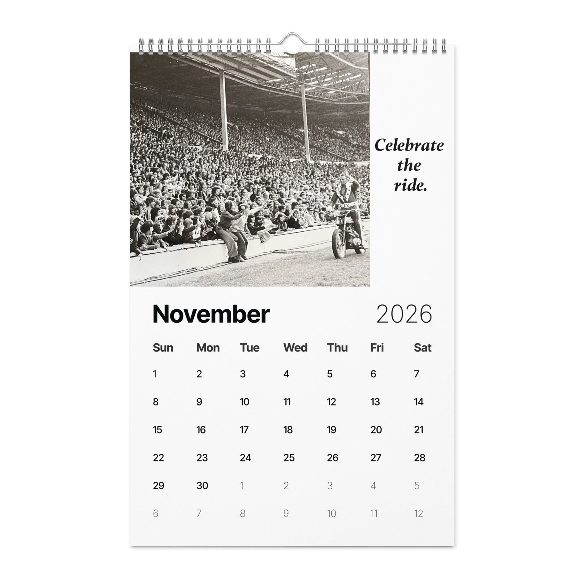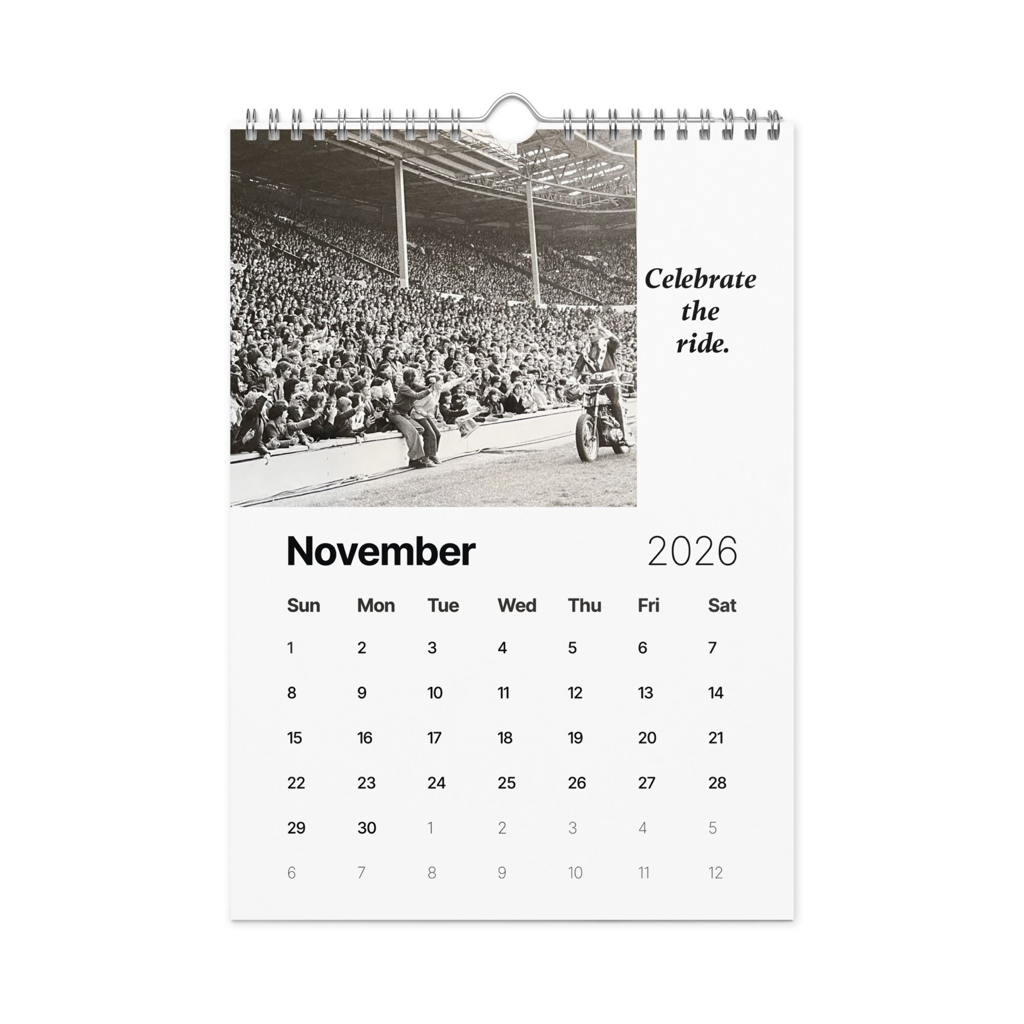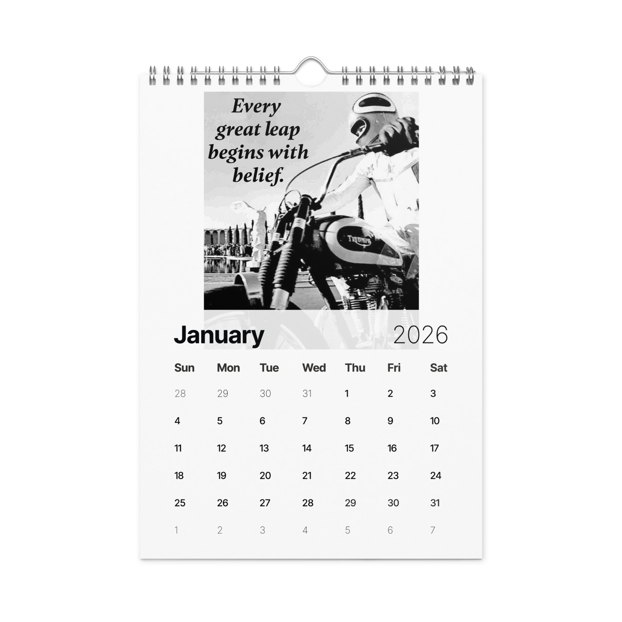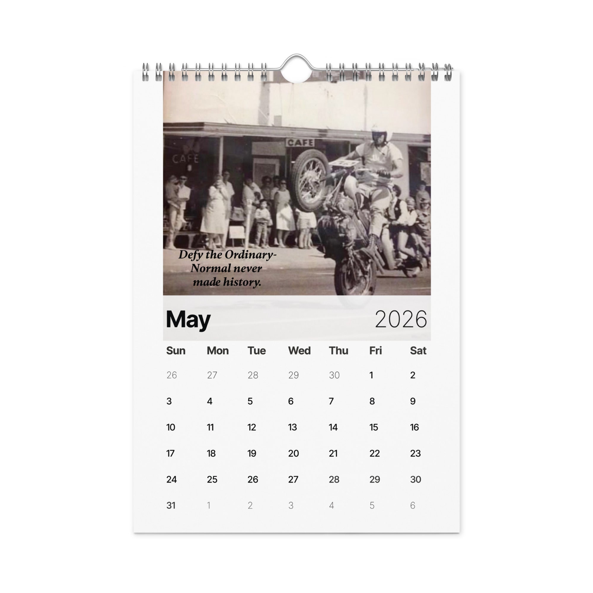 From the man who turned risk into art and courage into legend comes "A Year of Fearless Inspiration from Evel Knievel®. This 2026 wall calendar captures Evel’s unstoppable energy and daring philosophy, blending his iconic pictures with motivational messages that remind us to take the leap, face our fears, and live without limits. A tribute to the legend — and a challenge to every dreamer to ride boldly into the year ahead.