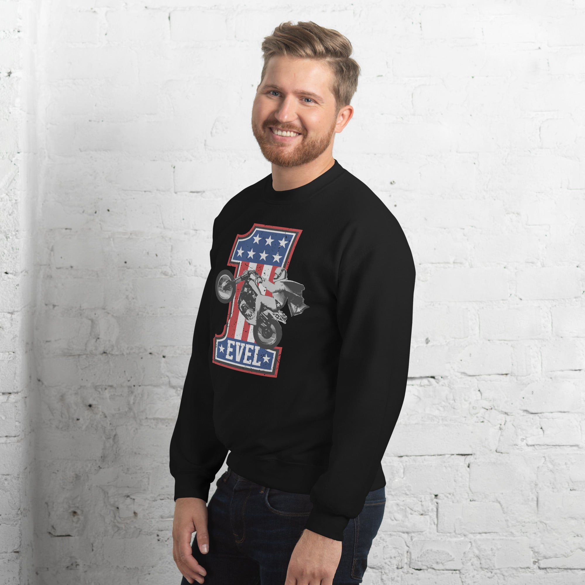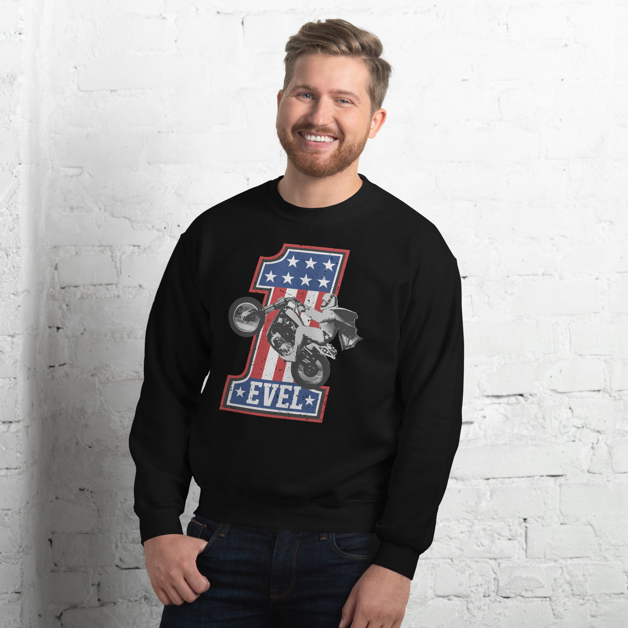 Join Team Evel Knievel! Stand out in our Evel Knievel #1 motorcycle sweatshirt. This 50% cotton, 50% polyester sweatshirt sticks to the basics with this timeless Evel Knievel #1 motorcycle logo printed on the front. With quality material and a comfortable fit, repping your Evel Knievel pride has never been easier. Available in black or sports grey! #sendit